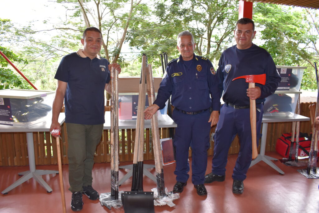 En total, se entregaron siete kits dotados con batefuegos, mochilas extintoras, sopladoras, azadones, rastrillos, botas de brigadista forestal, radios portátiles, linternas recargables, prismáticos, cascos, botiquines y señaléticas, entre otros implementos especializados para el control y mitigación de incendios forestales y deforestación, fortaleciendo así la respuesta comunitaria ante estas amenazas que afectan los ecosistemas estratégicos del Suroeste antioqueño.